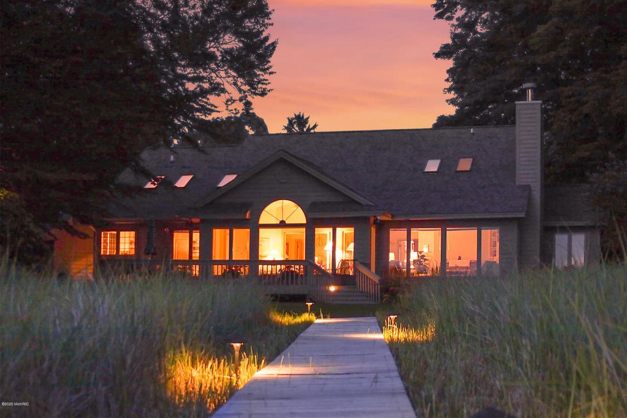 Lake Michigan private waterfront home, located in very desirable Park Township on a wide 100' lot. Enjoy spectacular lake views and the most incredible sunsets from this 4 bedroom 3 bath home with almost 3,500 square feet of well built living space. The home sits comfortably back from the bluff with a beautiful lakeside yard. Sellers have recently invested in shoreline protection for peace of mind, and keeping your home and land safe from erosion. Recently remodeled with newer roof, newer kitchen, baths, and a freshly painted exterior. Kitchen includes granite counters, Jenn-Air appliances, and a Dacor 5-burner stove top. Main floor primary suite, and an open, airy floor plan lends itself perfectly to easy lake living.